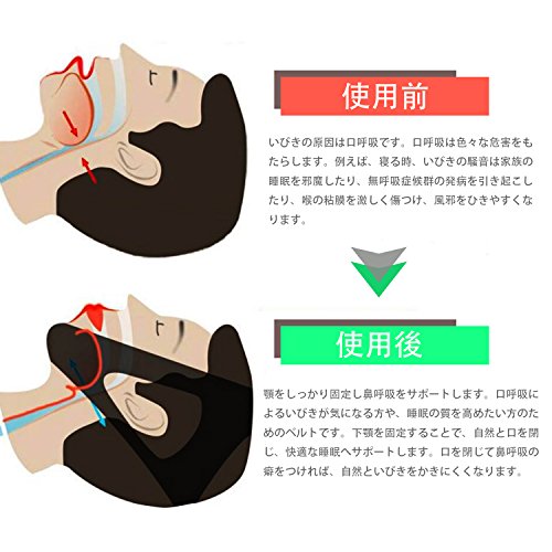 Dedicated sleep supporters to improve the Hclear-JP snoring. Cause of snoring is mouth breathing. Mouth breathing brings a variety of harm. For example, the noise of snoring when a night of sleep or interfere with the family of sleep, or cause the onset of apnea syndrome, hurt vigorously throat of mucous membranes, making it easier to catch cold. This product supports the nose breathing firmly fixed jaw. Snoring caused by mouth breathing is dedicated belt for those who want to improve the quality of people and sleep to be worried about. Flip closed nature and mouth by fixing the lower jaw, and support to comfortable sleep. It means the habit of nose breathing to close the mouth, less likely oysters nature and snoring. Stretch, using materials friendly to the skin and good soft and breathable, it can be used well in the overnight feelings. Is made of high stretch and high breathability of the material, is the effect size in temporomandibular joint disease prevention and apnea syndrome in the design of a single three-dimensional molded. There are a variety of effects. Not only snoring reduce, temporomandibular joint disease dislocation measures and mouth breathing prevention, is sleep supporters a lift-up of face, small face effect. It will help so that it is possible to obtain a comfortable sleep. To improve the quality of sleep, it will lead to the improvement of health conditions. In the design that does not compress the face, easily installed, you can remove it. Top of the head, securing the back of the head of the two places with Velcro, and fit to match the size of your face, you can wide range. Both men and women you can use. Please match the chin to the mounting way br> 1. jaw position of the inside. (Rely on supporters in the jaw, fasten a thin belt at the top of the head) br> 2. from stopping the thinner Velcro to the destination, you can smoothly fixed and stop the thicker Velcro. (Thick belt fastened at the back of the head, to adjust the length with Velcro) br> 3. is completed established a sagging or distortion. Br> br> Please use when the notes br> 1. are clogged nose, please refrain. Br> 2. As with comfort is not bad, please adjust the length if necessary. Br> 3. When the strap is too loose, it may not be obtained the effects that are expected to br> * Since it becomes a structure, such as wrapping the head, in a soft there is no need to tighten strongly touch you you can use. Br> br> * high stretch, high-breathable material, a single three-dimensional molded br> br> * supports the muscles of feeling good chin and face. Br> br> * is also effective in the lift-up beauty of the face. Br> br> * 1 This compared to the belt type has been made slightly larger. Br> br> ※ This product is the first, there are some peculiar smell. Those who are worried it will not bother If I have to wash before use. Since the jaw is firmly fixed, they might feel uncomfortable beginning. Please note.