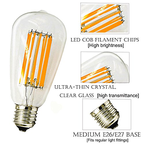 - Using LED COB filament chips inside. 12 watts, daylight 6000k, 360 degrees beam angle, Super bright;