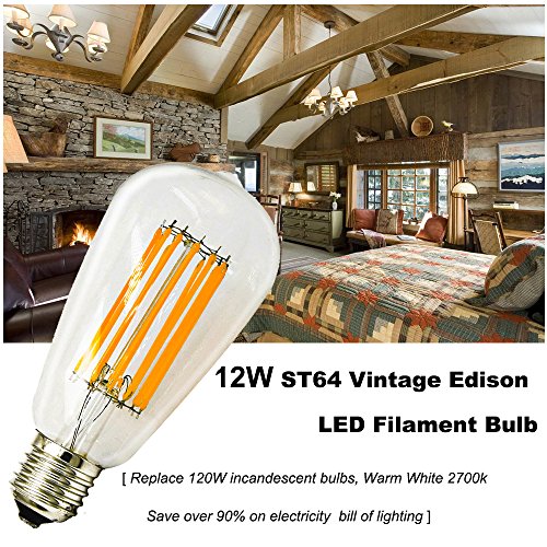 12W ST21 LED Filament Bulbs, Lustaled Vintage Edison LED Lights 120V ST64 Antique Shape Filament Lamps Medium E26 Base 120W Incandescent Replacement for Home Decortion (Daylight 6000K, 4-Pack)