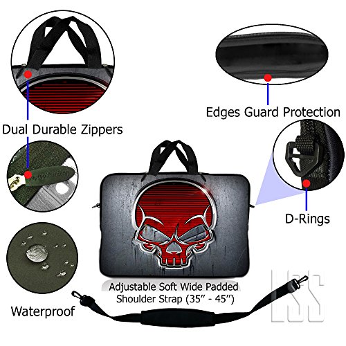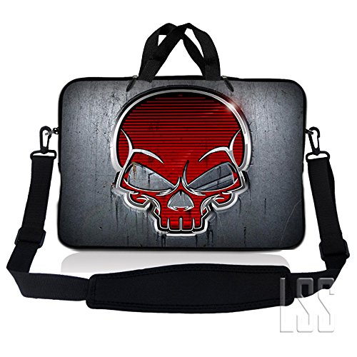 LSS 17 inch Laptop Sleeve Bag Carrying Case Pouch w/ Handle & Adjustable Shoulder Strap for 17.4" 17.3" 17" 16" Apple Macbook, GW, Acer, Asus, Dell, Hp, Sony, Toshiba, Silver Red Skull