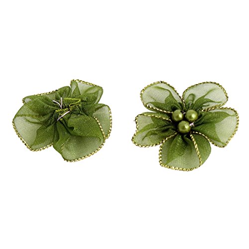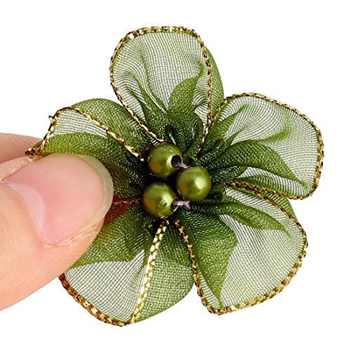 uxcell Boutique Clothing Imitation Pearl Decor Manual Appliques Organza Flower 20 PCS Olive Green