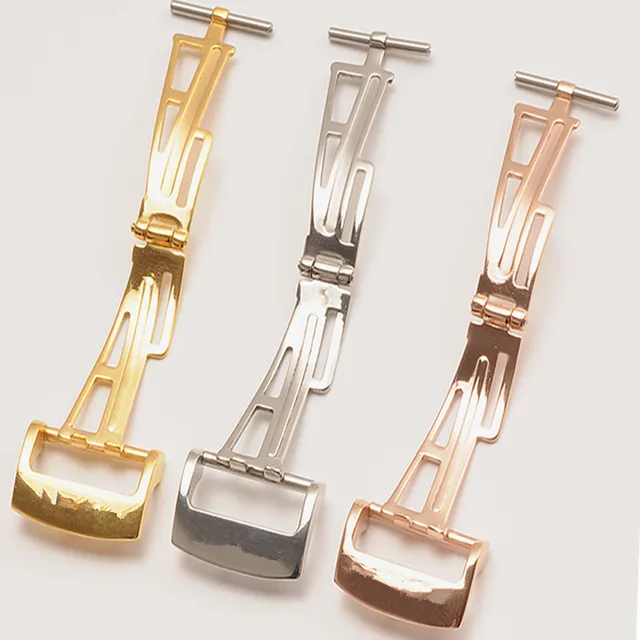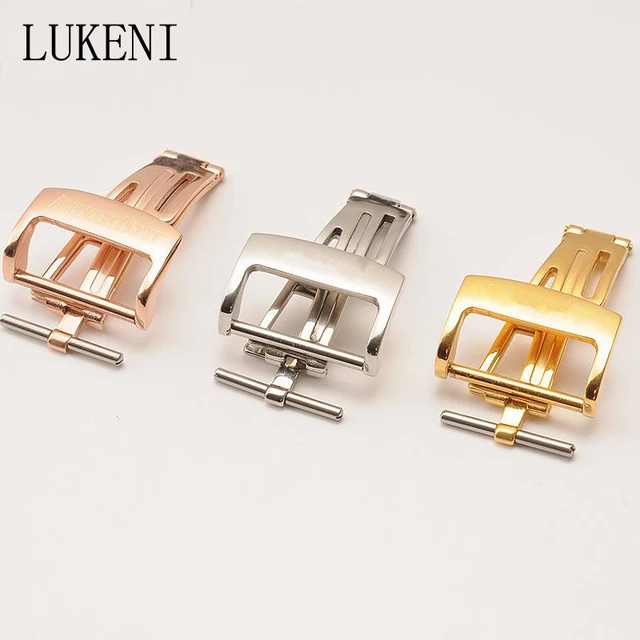 | [해외] Lukeni 스테인레스 스틸 18 미리메터 20 미리메터 실버 골드 개발 접이식 걸쇠 butterfly 버클 ap 로고 세 컬러 |