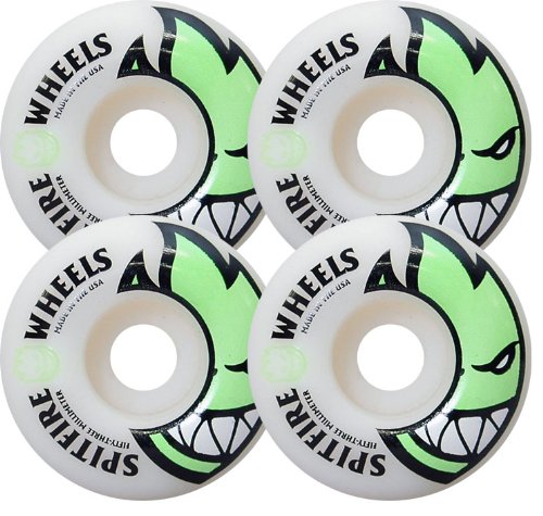 -. Feature : One (1) set of 53mm Spitfire Wheels Bighead Skateboard Wheels; includes four (4) wheels / Diameter: 53mm / Durometer: 99a / Color: White / Green