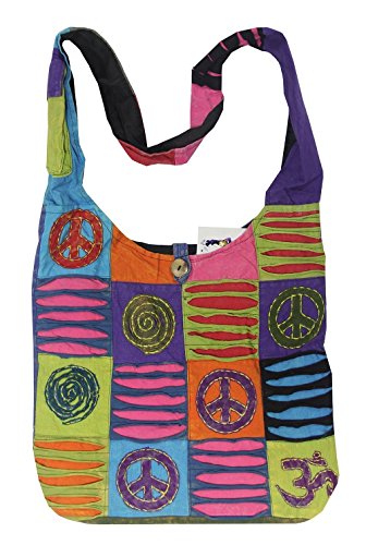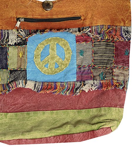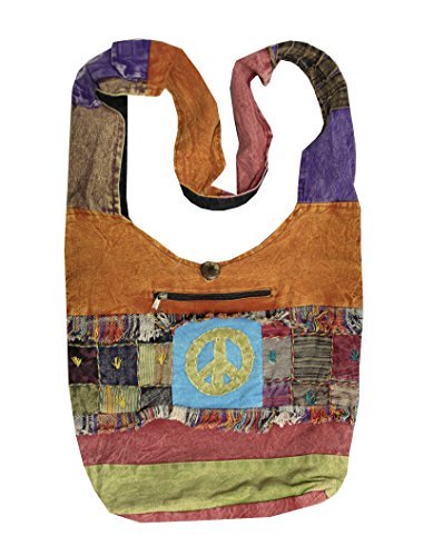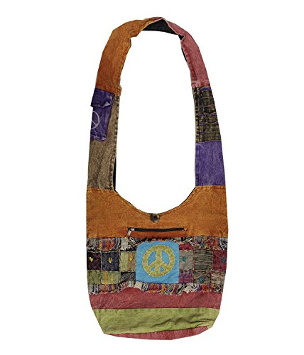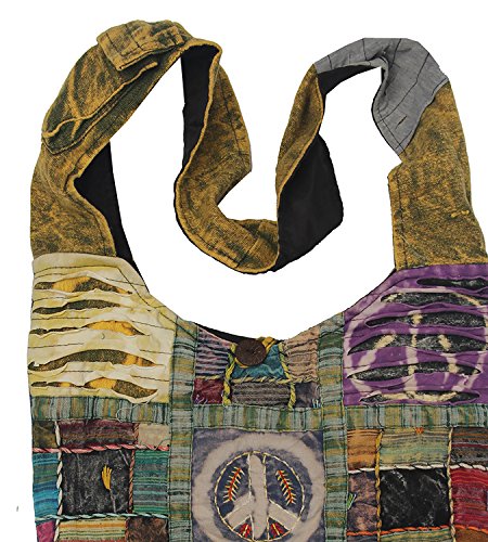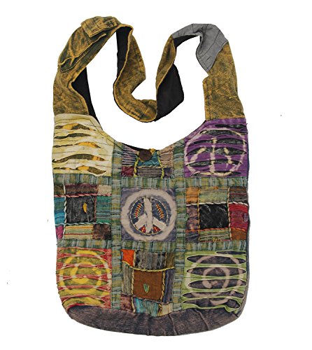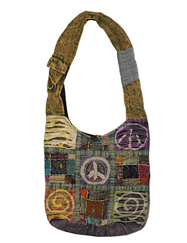 KayJayStyles Hobo Bohemian Recycled Patch Peace Crossbody Bag Nepal