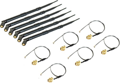 - Includes: 6 x 9dBi RPSMA Antennas and 6 x 8 inch Ufl cables