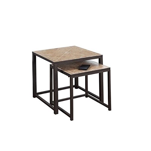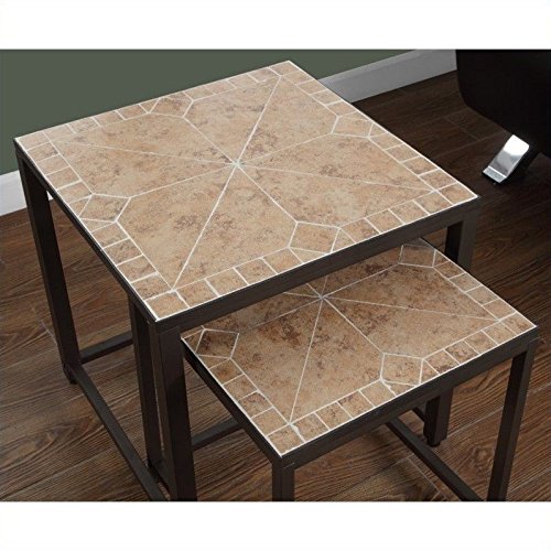 -. Title : Monarch Specialties Terracotta Tile Top/Hammered Brown 2-Piece Nesting Tables