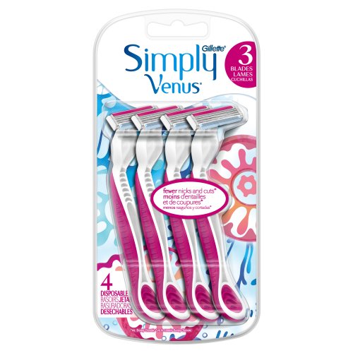 Venus Simply 3 Disposable razors provide a smooth shave at an affordable price. This disposable women's razor features a 3-bladed pivoting head and a comfortable handle for a close shave and easy glide. Venus Simply 3 gives you smooth skin with less irritation*. Each package contains four Venus Simply 3 disposable razors for women. *vs Gillette Daisy
