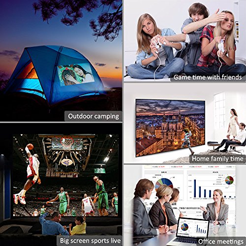 Multi-media system support (music, picture, video, txt) support multi-function input HDMI/AV/VGA/TV/USB/TF, connect your PC/PS4/DVD/Xbox via HDMI port t enjoy games with this mini projector