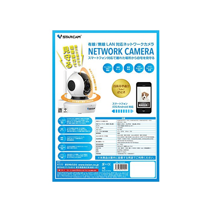원본상품명: 【KEIAN/安】 VSTARCAM Mini WIFI IP Camera 技術基準適合認定み有線/無線LANネットワクカメラ C7823WIP