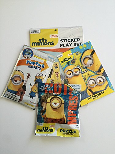 Studio : Universal Studios Publisher : Universal Studios Binding : Toy Product Description This Minions Gift Set Bundle Pack includes a Sticker Play Set with Reusable Stickers, 48 Piece Puzzle, Sticker Book and a Grab Go Play Pack. The sticker play set is great for creating action scenes. The set features 13 reusable stickers and panoramic background. Reposition the Minions and gang to create a fun interactive action packed scene. Plus the sticker book includes 4 sheets of extra stickers for more interactive play. Kids will enjoy coloring all their favorite Minion characters from the Universal Pictures Despicable Me! Movie with the Play Pack Grab Go. This activity set features a mini coloring book, 4 crayons and sheet of whimsical Minion characters. Any Minions fan will enjoy building the 48 piece Minion Caveman jigsaw puzzle. Kids will have tons of fun with this Minions gift set. This pack is great for entertaining little ones on those bad weather days, play dates with friends, traveling or just a little quite time. Satisfaction is Guaranteed - Order Your Set Today! 0