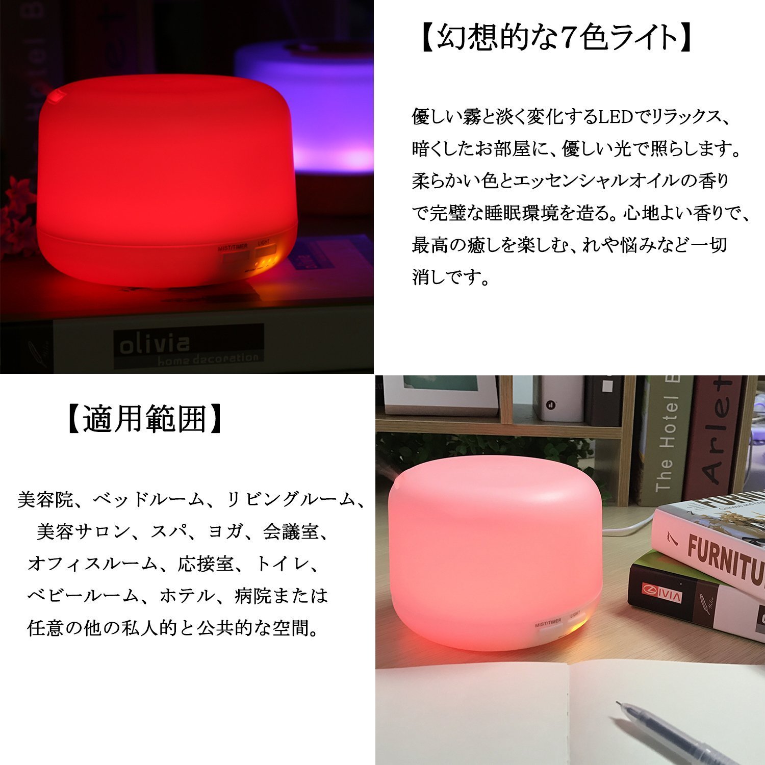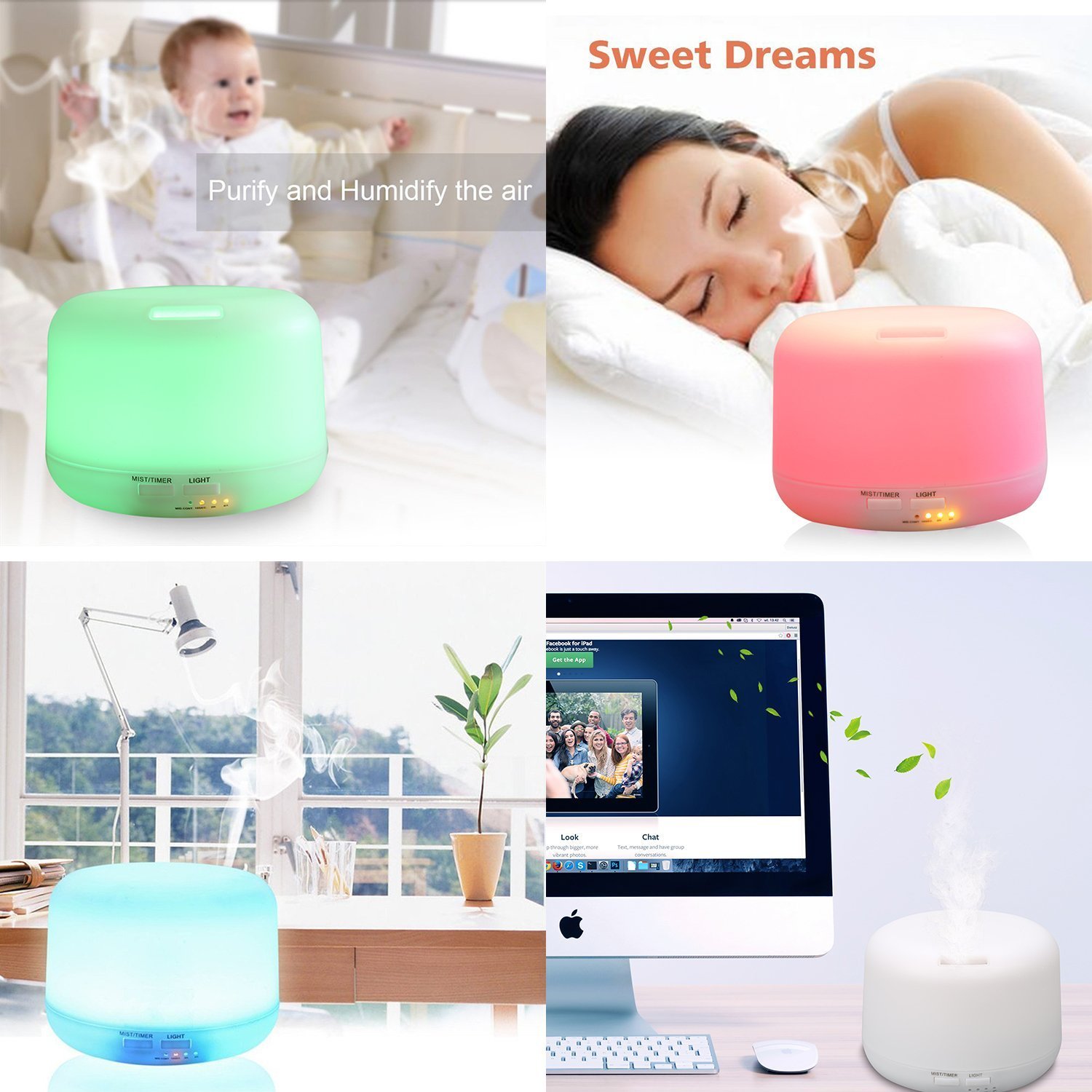 : Our humidifier vibrates 2.4 million times per second by our proprietary ultrasonic atomization technology, water and essential oil to 0.03 mm small particles!