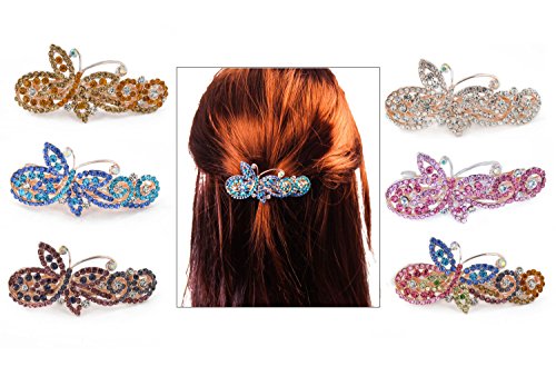 -. Title : Yeshan Lady Rhinestone Crystal beaded Butterfly Pattern Alloy Hair Barrette Clips