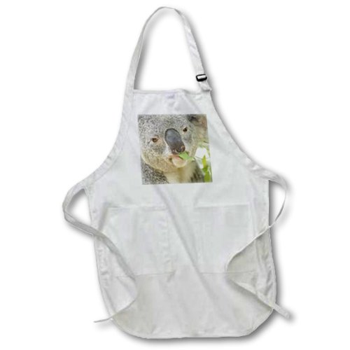 3dRose apr_88544_1 Queensland Koala Bear, Eucalyptus, San Diego Zoo, CA Maresa Pryor 22-Inch Width by 30-Inch Length Apron with Pockets, Full Length, White