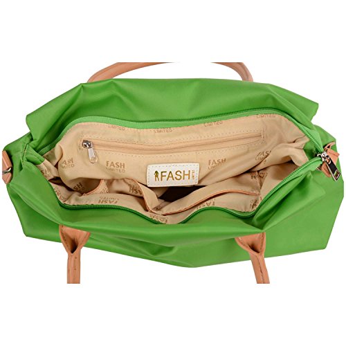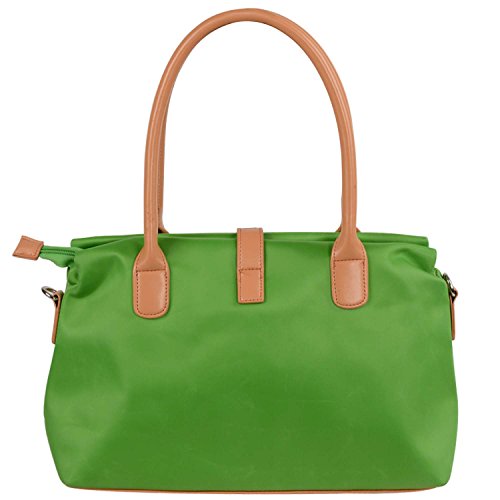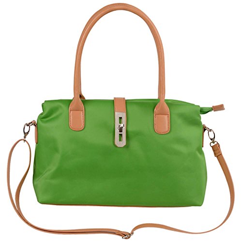 The excellent craftsmanship with faux leather and polyester fiber makes the bag enduring, while the design and colors adds style and attractiveness to it. The inner fabric lining has zippered and open pockets for your daily essentials. Supported with dual handles for portability, the bag also has a long adjustable strap, so you can even wear it as a sling.