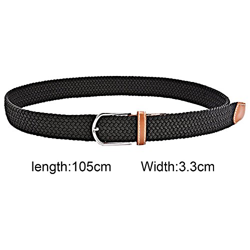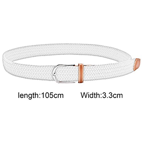 Binding : Apparel Product Description Description: - Material: Elasticity Leather, soft and durable. - Size: 3.3 cm * 105 cm, fit for waist less than 87 cm. - Color: black/ white/ blue white/ black white/ green/ brown. - Weave belt, support to adjust the length, fit for women or men, not easily deformed. - Classical belt type, simple and stylish, suitable for many occasion when you wear a jean or dress. - Wash tip, support hand wash or machine wash, elasticity material support reuse many times.