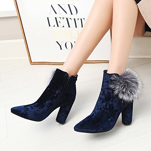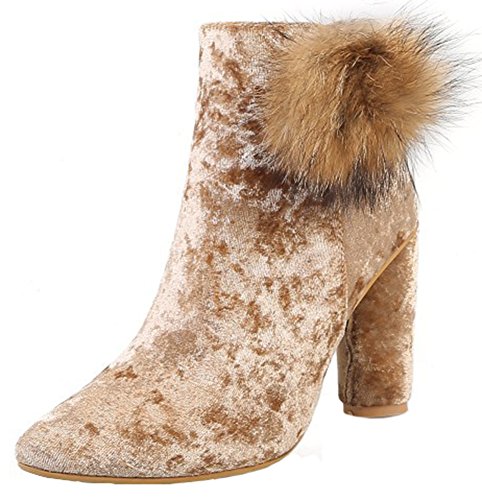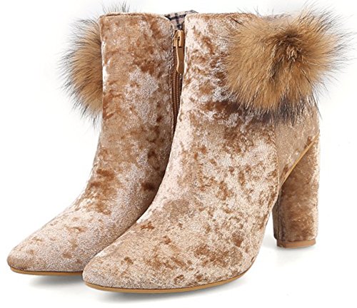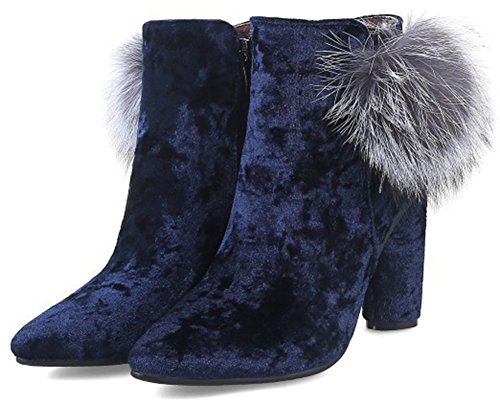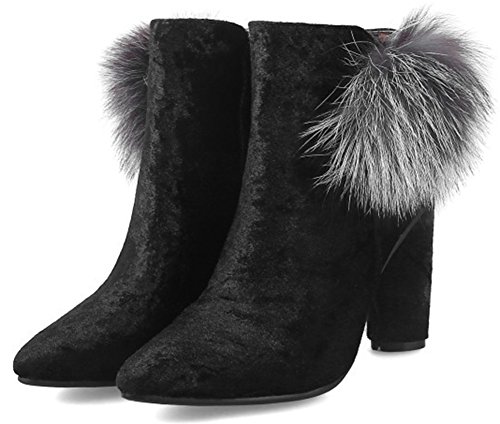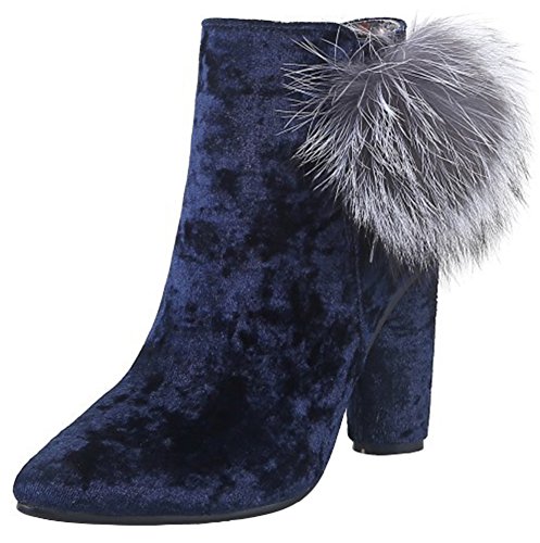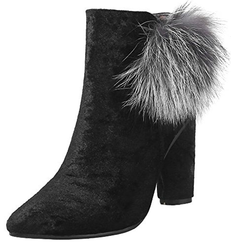 (Mofri)/Women's/Boots/DIRECT FROM USA/Mofri Women's Sexy Velvet Fluffy Pompon Side Zipper Ankle Booties Pointed Toe Block High Heel S...