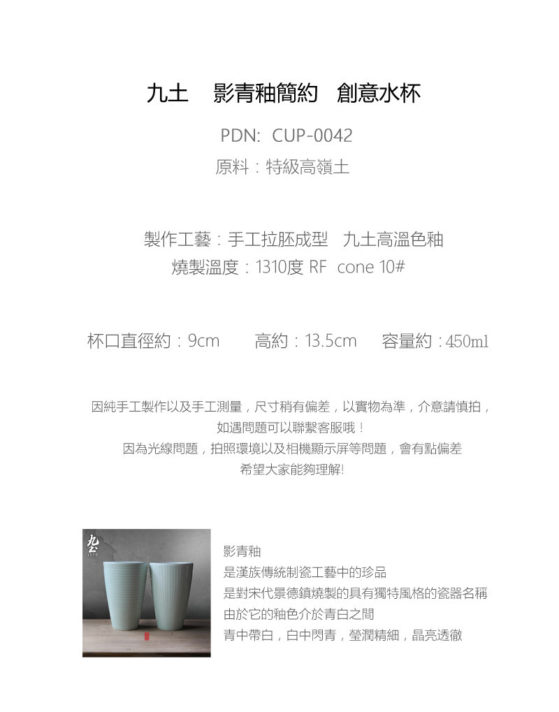 景德镇传统手工影青杯 简约陶瓷水杯情侣款随手杯绿茶茶水杯