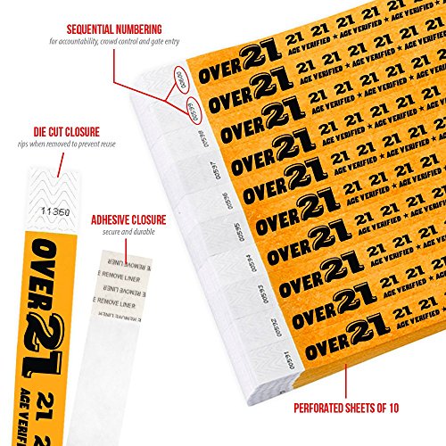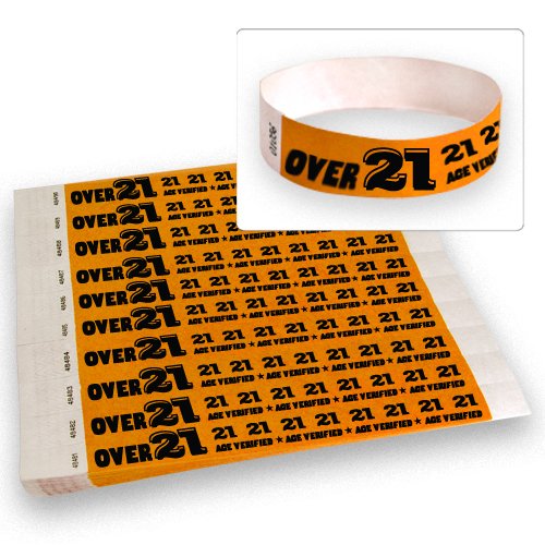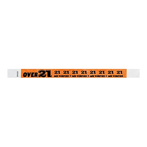 -. Title : Over 21 Orange - Wristco 3/4" Tyvek Wristbands - 500 Ct.