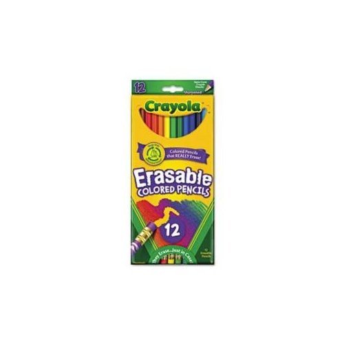 Studio : Crayola, Inc. Publisher : Crayola, Inc. Binding : Toy Product Description CRAYOLA-Erasable Colored Pencils, they erase just in case. No more smudges. No more ripped paper. No more do-overs! Correct mistakes and make changes anytime. The Crayola erasers have been specially formulated to maximize erasing results. Set of 12 includes colors: yellow, orange, red orange, red, violet, blue, sky blue, yellow green, green, brown, light brown and black. Colored pencils are non-toxic and Conform to ASTM D4236. Made in USA. 0