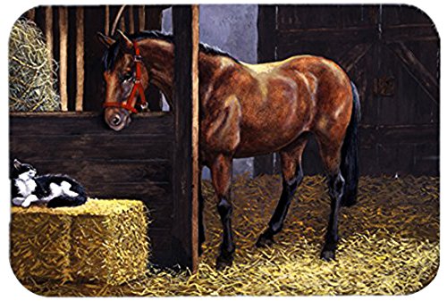 Caroline's Treasures Horse In Stable with Cat Glass Cutting Board, Large, Multicolor