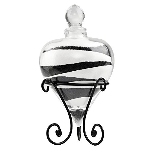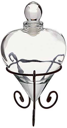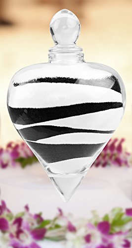 This pretty Sand Unity Ceremony Set includes one glass heart vase with rubber seal cork and glass stopper, one metal stand, one tube of black sand, one tube of white sand.