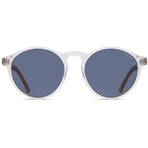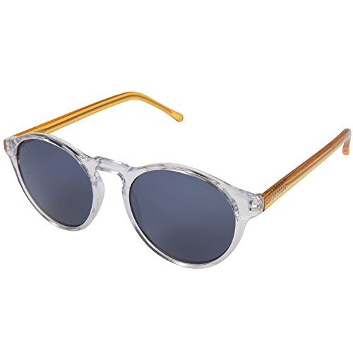 Product Description Get ready to party in the all new Devon sunglasses from Komono. These festival sunglasses features a clear round frame with yellow detailing, super light temples and cool blue colored lens. 0