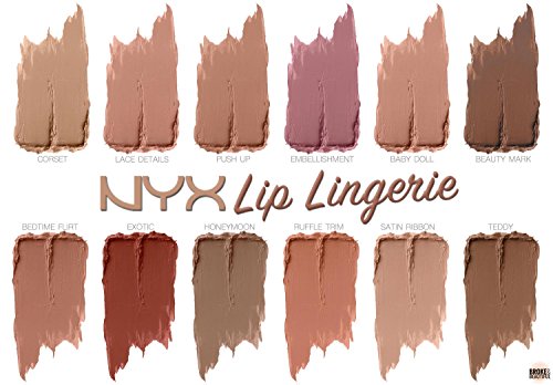 Slip into something seductive with Lip Lingerie, our new weightless liquid lipstick with a plush matte finish. Available in a range of color-kissed nudes-from cinnamon pink and chocolate brown, to warm mahogany red and classic nude beige-each sultry shade will coat the curves of your lips with irresistibly creamy color.Feature