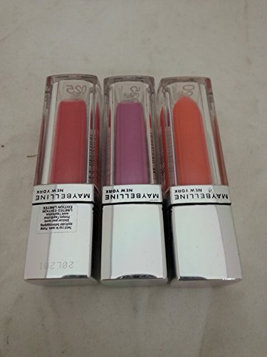 -. Binding : Misc. -. Brand : Color Elixir -. Color : Violet -. Feature : 035 Luxe in Lilac / delivers the color of a lipstick, the cushiony care of a balm, and the glass shine of a gloss / Our exclusive smoothing angora brush delivers a polished , even application and smoothing sensation to lips -. Label : Maybelline -. Manufacturer : Maybelline -. PackageQuantity : 3 -. ProductGroup : Beauty -. ProductTypeName : BEAUTY -. Publisher : Maybelline -. Studio : Maybelline -. Title : Maybelline Color Sensational Color Elixir -035 Luxe in Lilac