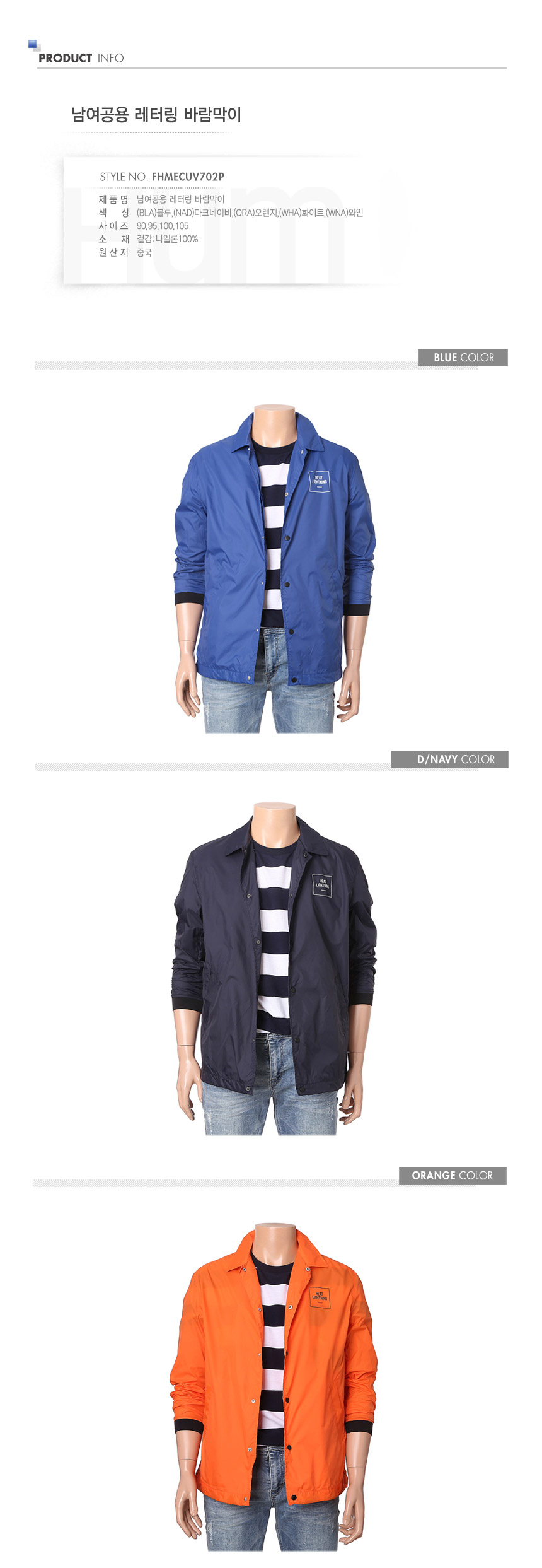 -남여공용 레터링 바람막이 점퍼입니다