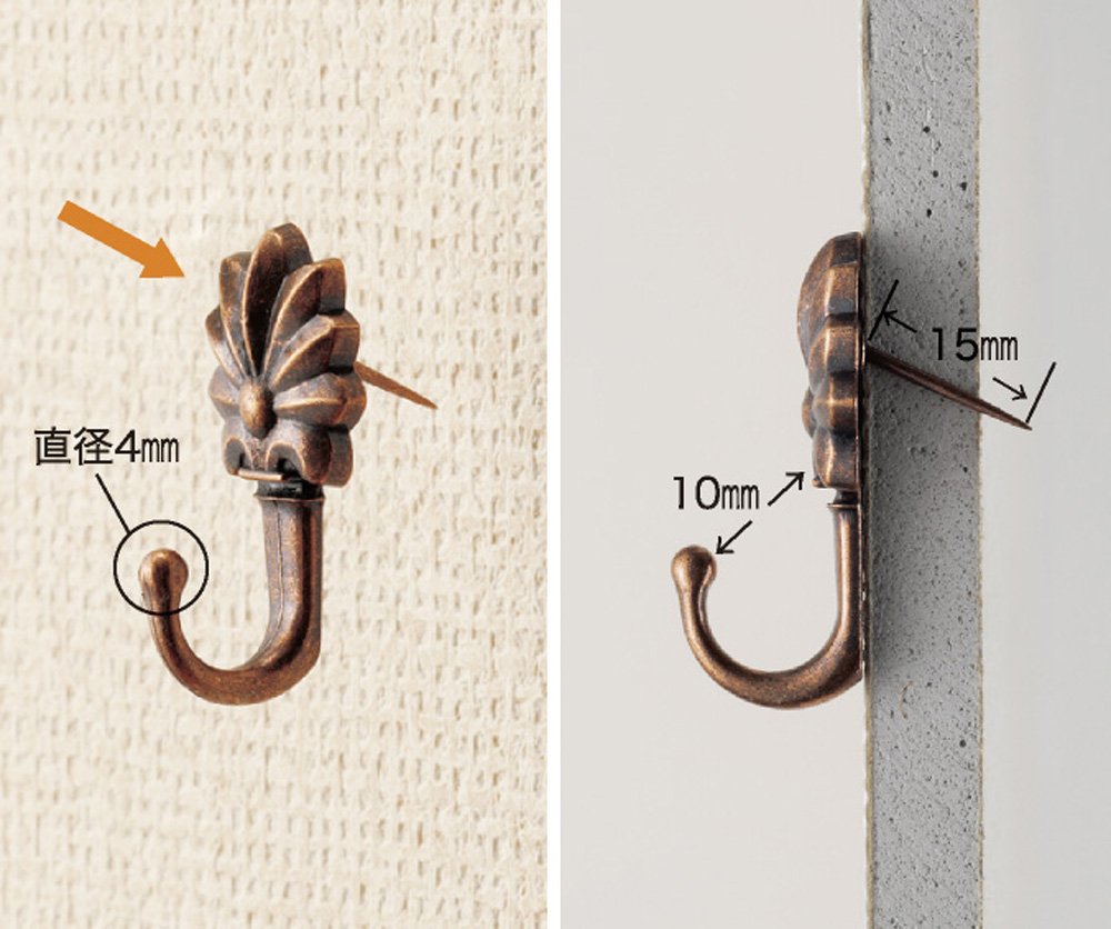 ● [Quality display] ● Load limit: 1 kg ● Material indication: Main body / Zinc die-casting (copper bronze plating), pin / steel wire ● 【Country of origin】 ● ...