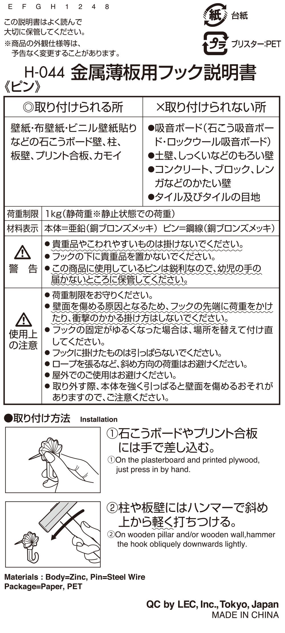 ● [Product Description] ● "Hook for metal thin plate" is a hook that can be attached to a plate wall or printed plywood.