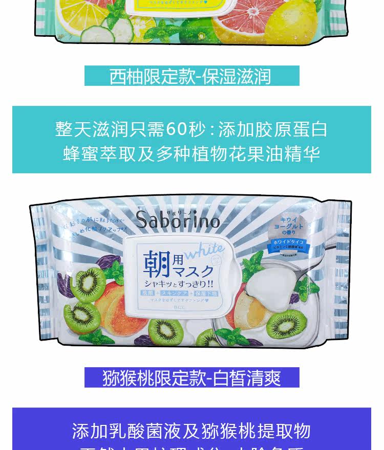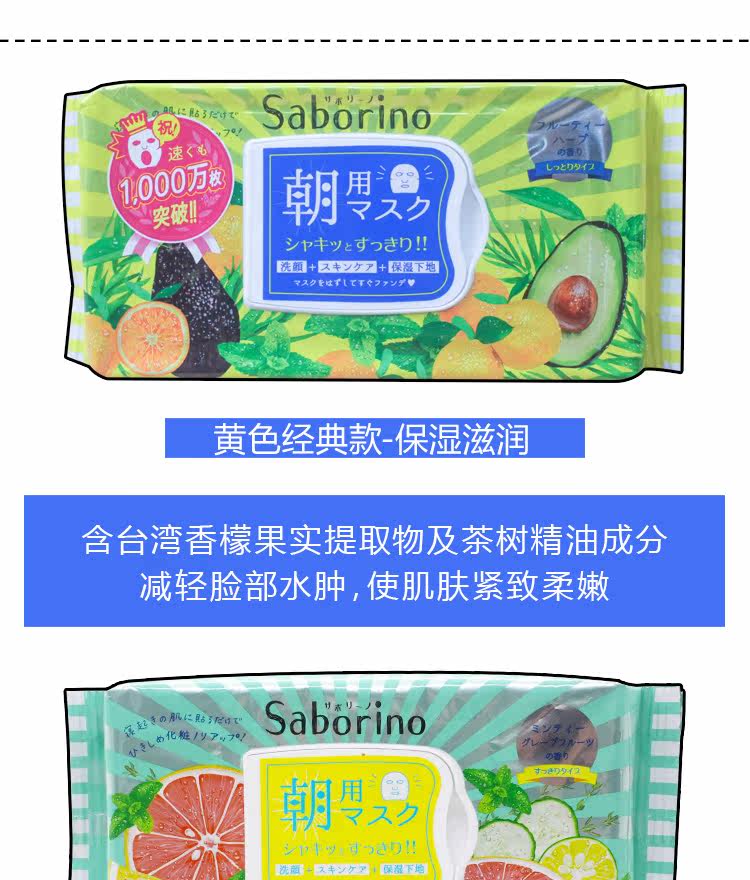 Saborino Morning Mask is designed to help you get ready quickly in the morning. When you wake up, take one sheet out and put it on your face. The sheet will take effect in just 60 seconds and you can start applying make-up.