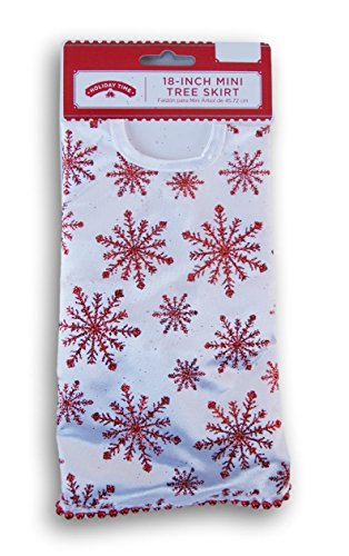 Holiday Time 2017 Miniature Christmas Tree Skirt - White with Red Glitter Snowflakes - 18 Inch