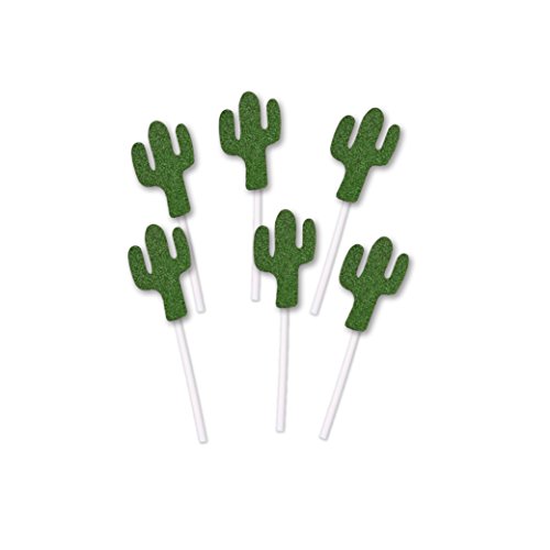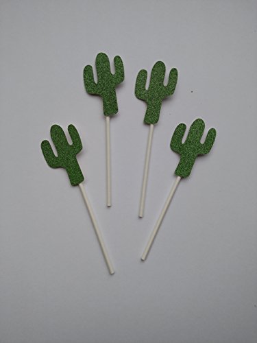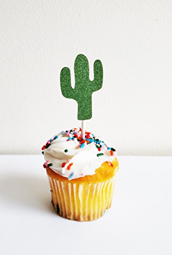 Cactus Cupcake Toppers in Green Glitter (set of 20) for Fiesta Themed Event
