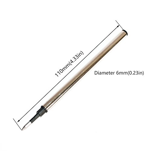 -. Feature : 2 refills,metal body,steel tip,black ink / Length: 4.33 in (11cm), diameter:0.23 in (0.6cm) / Smooth writing and no jam / Fits wide range of rollerball pens or ballpoint pens that accept a standard size refill / Customers' satisfaction is our top P.R.Iority,please feel free to return and get refund if this refill doesn't work with your pen or for whatever reason