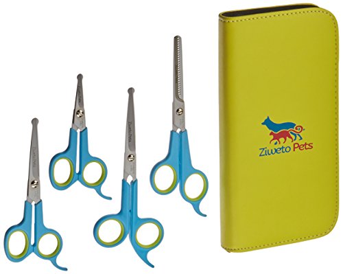 ZIWETO PETS Premium Quality Grooming scissors set of 4 pieces for dogs and cats with rounded tips (For Body, Face, Ear, Nose, Paw)