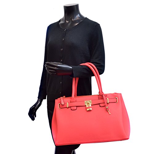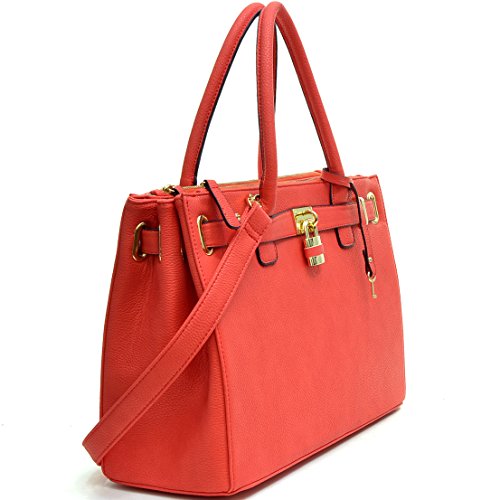 - Title : Dasein Faux Leather Padlock Structured Briefcase Satchel Handbag, Tablet, iPad Bag - Coral