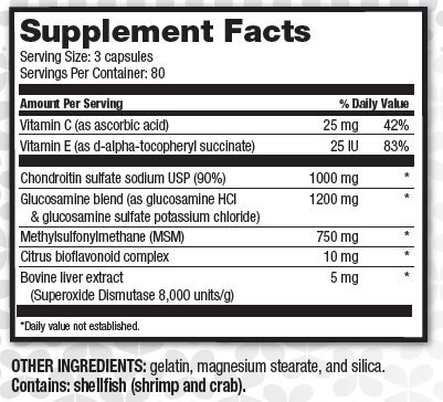 Ultra Plan® Extra Strength Glucosamine Chondroitin MSM combines powerful nutrients for effective joint support. Glucosamine Sulfate, an important building block for joint support, helps promote joint flexibility.* Chondroitin is a major constituent of cartilage, providing structure and holding water and nutrients for healthy joint function.* MSM is a chemical found in plants, animals and humans that aids in the relief of osteoarthritis and joint inflammation.*