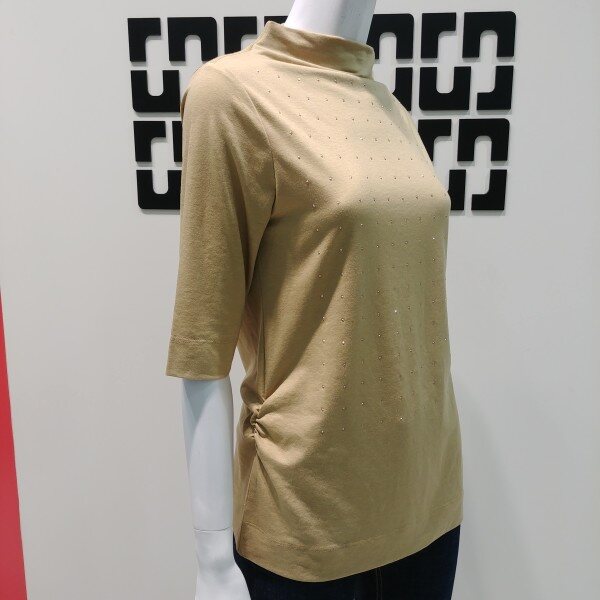 심플한 디자인에 텐셀과 폴리 스판이 혼방된 부드러운 터치감과 신축성 좋은 소재로 착용감이 좋은 저지 티셔츠입니다 루즈한 반넥으로 목을살짝 감싸주어 간절기에입기 좋은 스타일 입니다 앞쪽에 핫픽스가 들어가 화사하면서 고급스럽게 연출하기 좋습니다 ★25 인치 기장입니다 ★