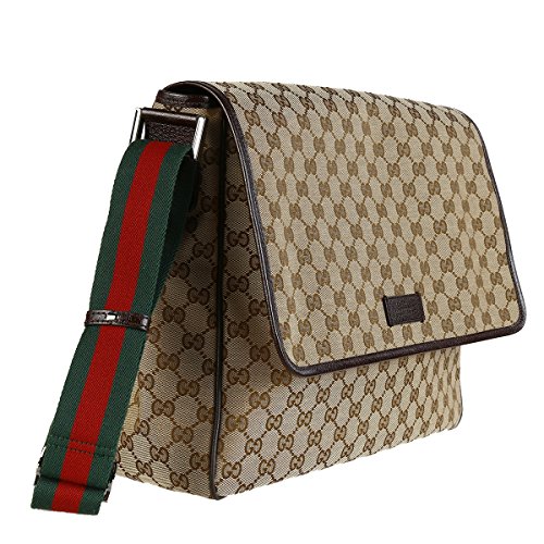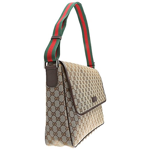 GUCCI MESSENGER BEIGE/EBONY ORIGINAL GG CANVAS WITH BROWN LEATHER TRIM