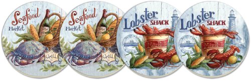 - Coasters are natural stoneware with decorative transfer print