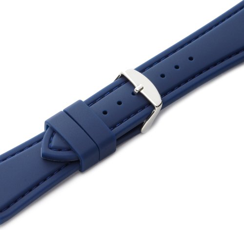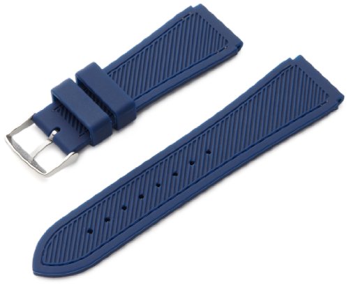 Amazon.com This replacement Diver Band is made to fit most all 22mm Watches. The Band is made using the Popular Silicone material which can come in several colors. Silicone is 100% Hypo-Allergenic and Waterproof. This band also has nylon colored stitching to add an even more unique look. The Silicone material also has a silky smooth finishing for a very supple look and feel. The Buckle is made using Stainless Steel. The band measures 22mm at the lug end where it fits to the watch and has a 20mm buckle. The band length is 121x75mm or about 4-3/4" x 3". This band is done in Navy Blue Silicone with Matching Navy Blue Stitching. 0