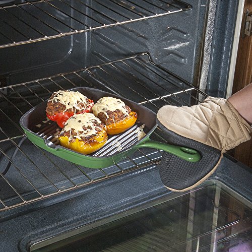 - Beautiful Green Color complements any kitchen decor and lets you take this pan straight from oven to table.