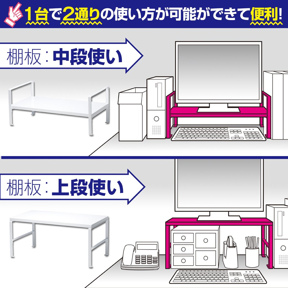 Since the shelf board can be changed to two kinds of heights, you can use it with the shelf height and storage size according to the application.