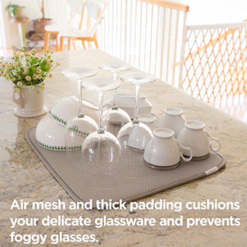 Microfiber absorbs 4 times its weight in water, use the mat to catch drips under dish rack, protect your countertops from scratches. Compared to hard to store silicone drying mats - these are easy to store, wash and use.