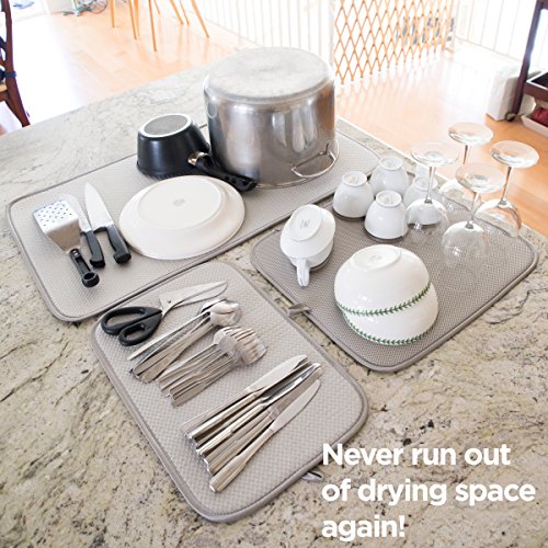 This set of 3 reversible microfiber dish drying mats solves all your problems and you won't have to buy any other drying mats again.