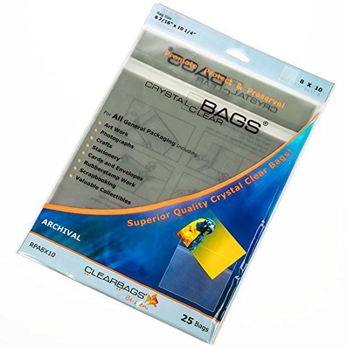 ClearBags 8 x 10 Seal Top Cellophane Bags | Perfect Poly Bags for Photos, Art, Pictures, Posters and More | Crystal Clear Archival Safe | RPA8X10 (Pack of 25)