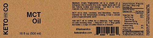 -. Feature : 100% pure and natural MCTs, 60%/40% blend of C8 and C10 gives you ketones for longer and at about half the P.R.Ice of C8 alone. / Clear, Odorless, Tasteless MCT oil can be used to add nutrition and richness to shakes, salad dressings, and other dishes without affecting taste. / Goes great mixed into coffee with a high speed blender (throw in some butter too) for a double hit of energy from caffeine + ketones / Food grade, high purity, vegan. / Suitable for followers of the ketogenic and paleo diet as well as athletes and biohackers.