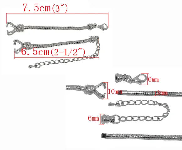 | [해외]최고 품질 패션 DIY 2 세트 혼합 시계 줄 뱀 체인 시계 스트랩 랍스터 걸쇠 6.5 센치메터, 7.5 센치메터 B10101 |