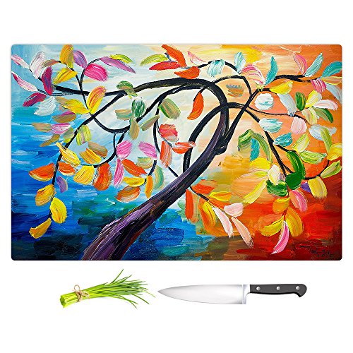 DiaNoche Designs CB-LamFukTimColorfulTreelV2 Artist Lam Fuk Tim-Colorful Tree Lv Cutting Boards from, Large 15" x 11"